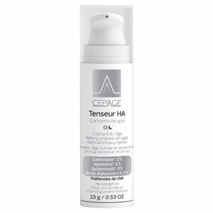 CEPAGE Tenseur HA Contorno de Ojos es una crema anti-age para el cuidado diario del contorno de ojos. Especialmente diseñada para pieles con arrugas, líneas de expresión y/o deshidratadas. Tiene un efecto relleno inmediato y duradero. Asimismo, atenúa bolsas y ojeras. Su fórmula contiene activos innovadores, exclusivos y sinérgicos: Cafeisilane® 2% que estimula la microcirculación y atenúa bolsas y ojeras.