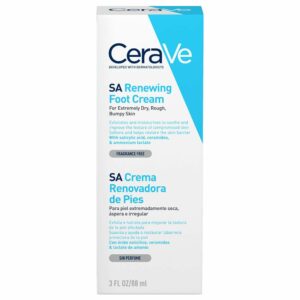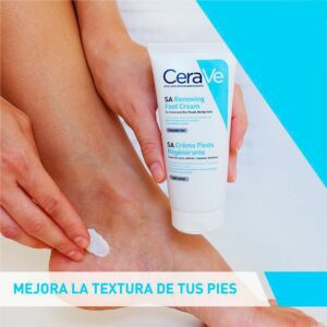 Desarrollada con dermatólogos, la Crema para Pies Renovadora con Ácido Salicílico de CeraVe hidrata de forma efectiva y ayuda a reparar la barrera protectora de la piel de los pies. Esta crema no grasa de rápida absorción con 3 ceramidas esenciales y ácido hialurónico, exfolia e hidrata la piel de los pies extremadamente seca e irregular para suavizar y mejorar la textura de la piel dañada. Su fórmula sin perfume es adecuada para pieles sensibles.