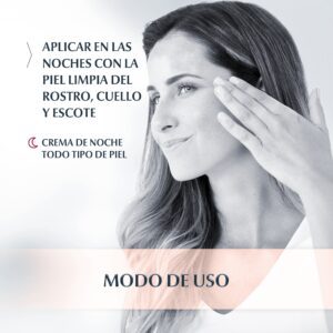 2) Aplicar Eucerin ANTI-PIGMENT Crema de noche sobre el rostro, cuello y escote, masajeando suavemente.