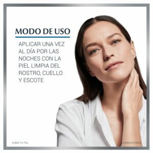 3) Aplicar Eucerin HYALURON-FILLER Peeling & Sérum noche sobre el rostro, cuello y escote, masajeando suavemente y evitando el contacto con los ojos.